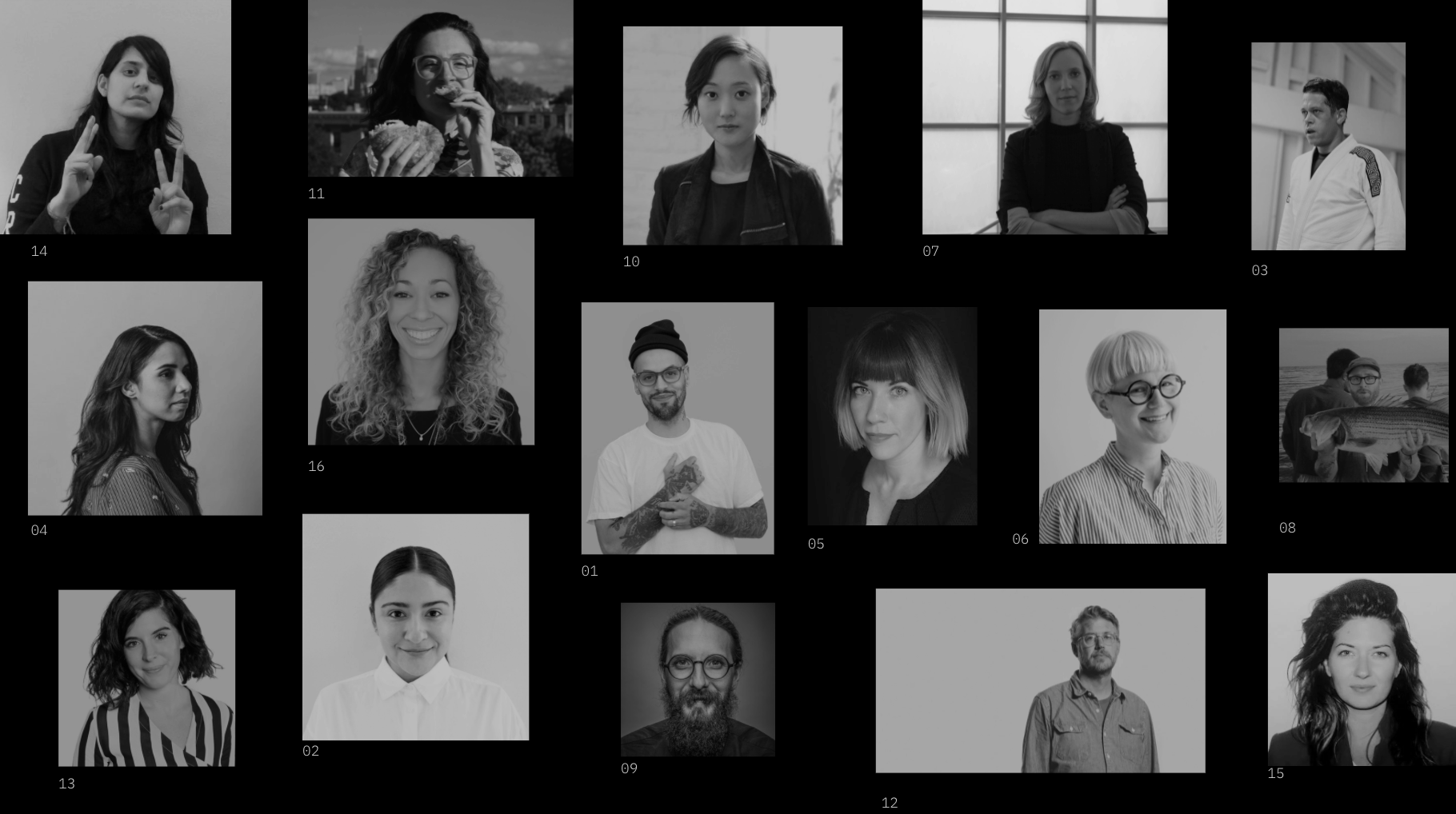 Many thanks for their generocity. These great people allowed me to interview them 01: Yego Moravia, Creative Director Apple; 02: Johanna Langford, Creative Director; 03 Joe Staples, Creative Director, Mother LA; 04: Lyanne Dubon-Aguilar, Creative Director, Etsy; 05 Anjelica Triola 06 Gillian Haro, Creative Director, Aruliden; 07 Julia Hoffman, Executive Creative Director, Google; 08 Kevin Kearney, Founder, Stacks; 09 Randy Hunt, Head of Design, Grab; 10 Min Lew, Partner, Base; 11 Andrea Marpillero-Colomina, Urbanist, The New School; 12 Dan Schechter, Executive Creative Director, Instrument; 13 Lisa Smith, Executive Creative Director, Jones Knowles Ritchie; 14 Nishat Akhtar, Assoicate Vice President of Creative, Instrument; 15 Karin Fyhrie, Founder & CCO, Sovereign Objects; 16 Alexandra Wells, Creative Director, Media Monks.